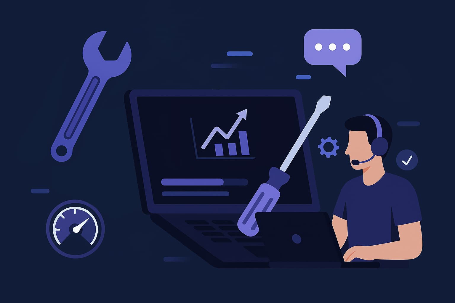 Asigurăm suport post-lansare și intervenim ori de câte ori este nevoie. Identificăm și rezolvăm problemele de performanță sau securitate, îmbunătățim experiența utilizatorului și venim cu recomandări proactive. Toate proiectele beneficiază de o perioadă de mentenanță gratuită.